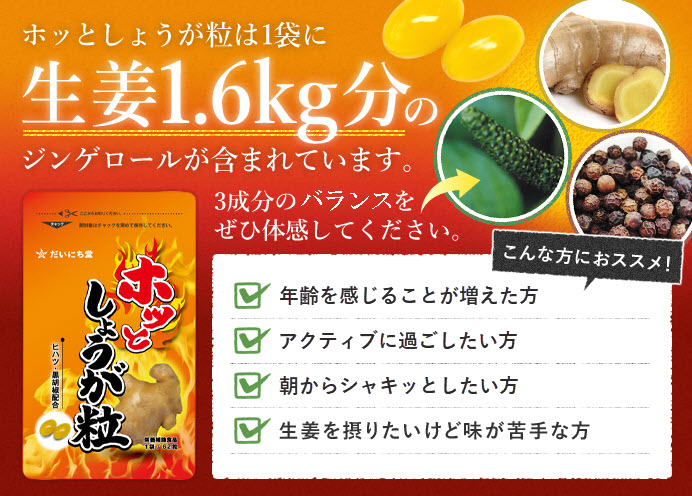 だいにち堂 ホッとしょうが粒の公式サイトへ